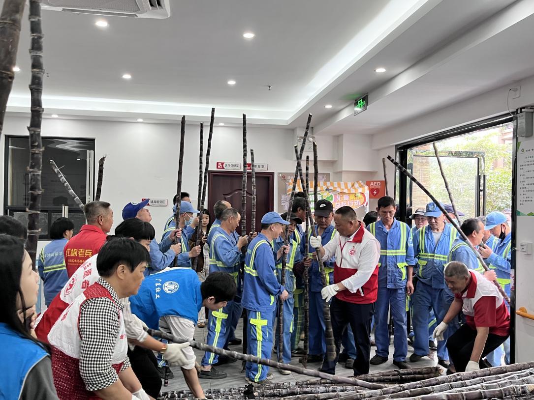 活动现场,志愿者们分工协作、忙而有序,将打包整齐的甘蔗逐一送到一线新就业群体手中,与他们亲切交谈,详细询问日常工作强度、生活保障等情况,对他们不畏寒暑、坚守岗位,为城市有序运转和居民生活便利付出的辛勤汗水表示衷心感谢。